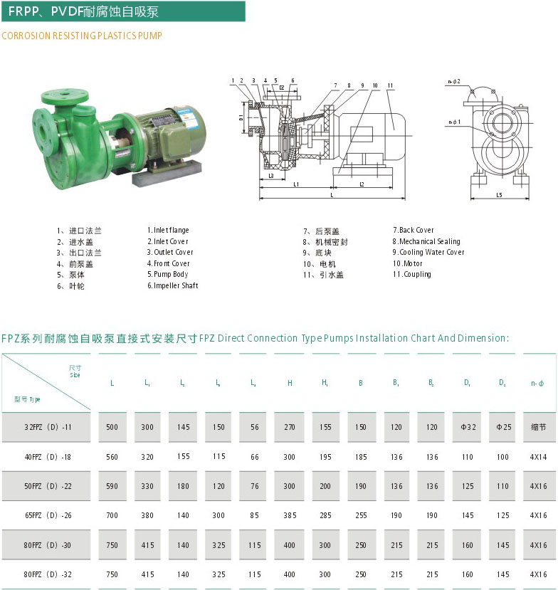 FRPP、PVDF耐腐蚀自吸泵